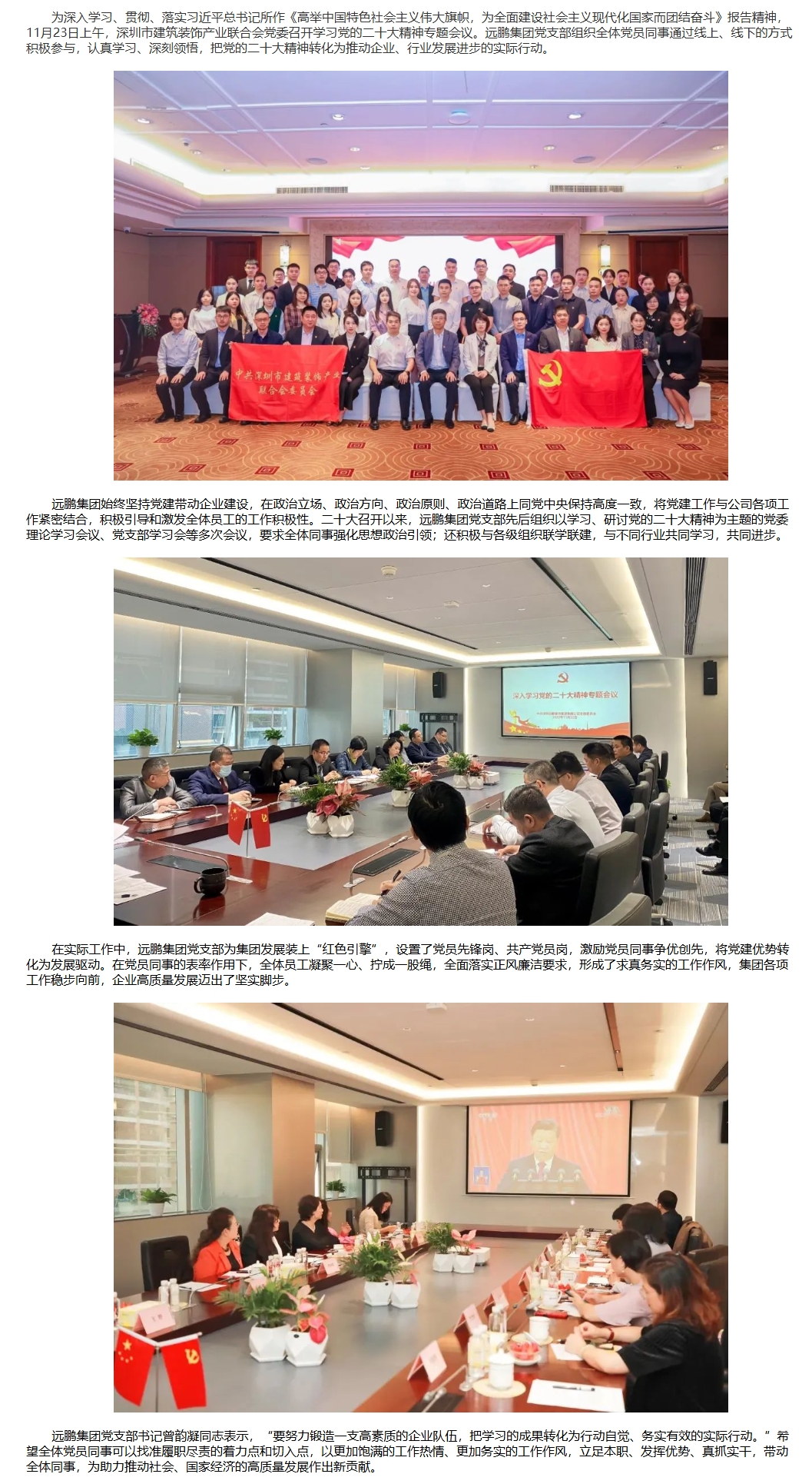 遠(yuǎn)鵬集團(tuán)黨支部積極組織深入學(xué)習(xí)黨的二十大精神專題會(huì)議